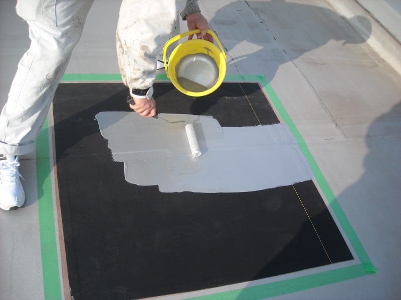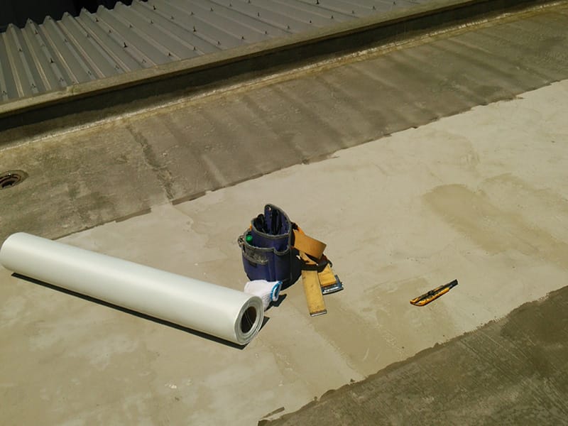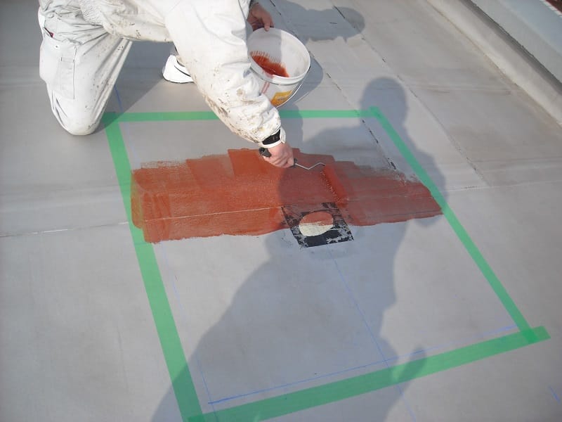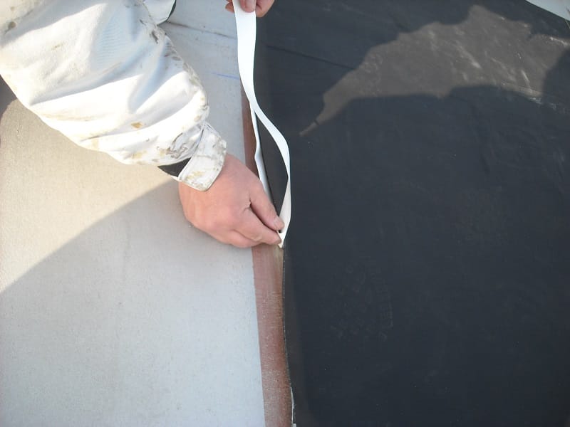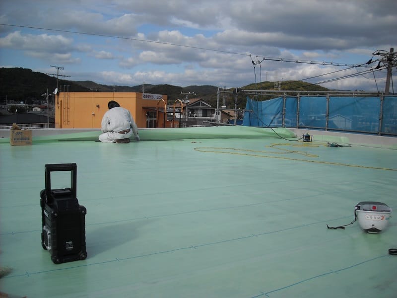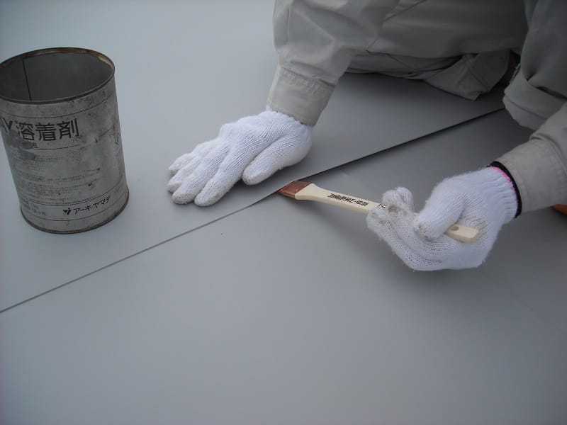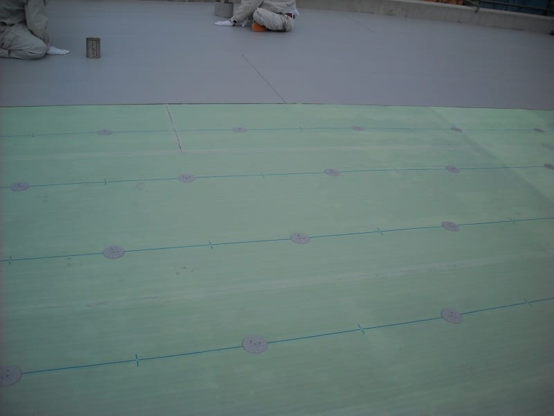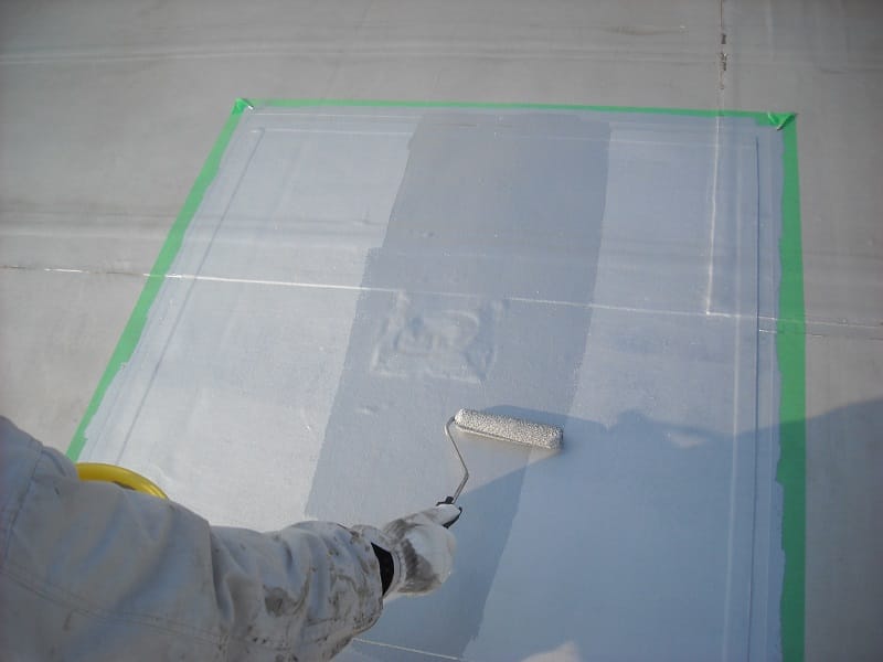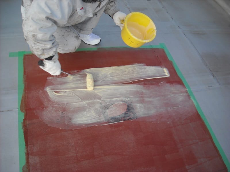 ③HVSシート・補強布張りの様子 プライマーを塗ってシートを張ります。
