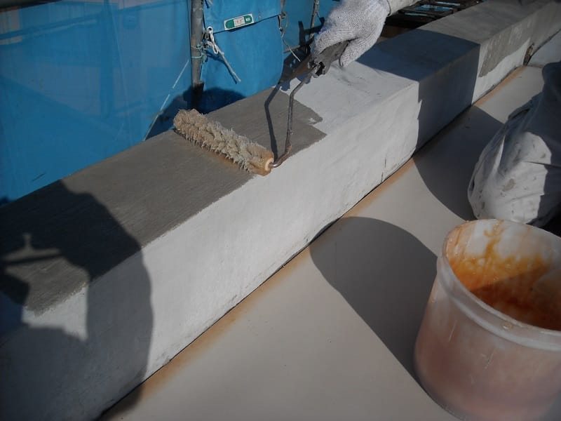 ⑥下地調整。下地の凸凹や亀裂を均一にします。