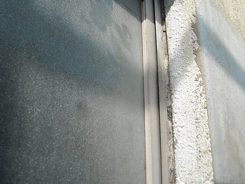 ビルのオーナー様より依頼をいただきました。今回は屋上の防水をしましたが、各個室サッシ廻りの劣化箇所について、シーリングの撤去・打ち替えもご依頼いただいております。