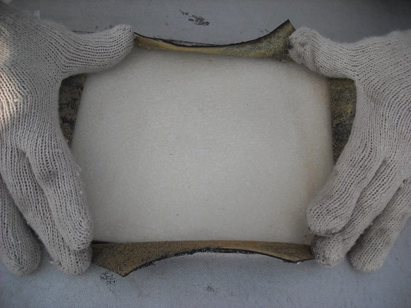 ②マスチック(手塗りによる凸凹模様付け)の様子