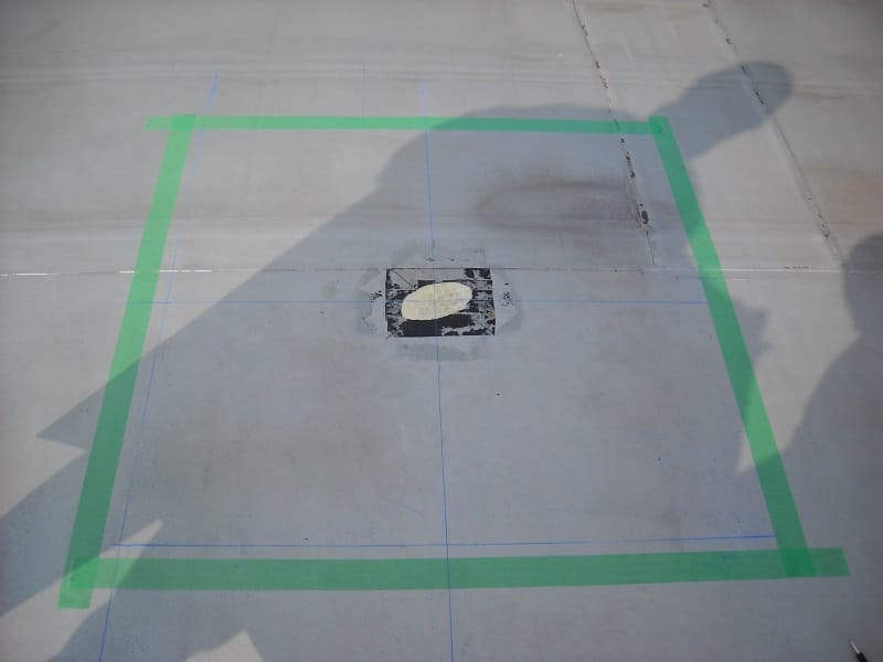 工事内容 屋上シート防水部分補修。鳥害ではないかと思われます。部分的にシートが剥ぎ取られ穴のあいた部分を中心に補修を行いました。