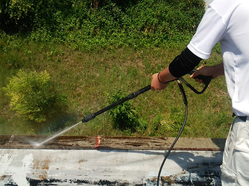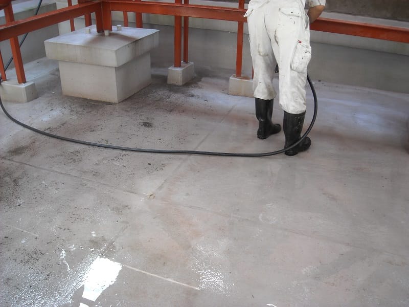 ①高圧洗浄 表面の汚れや苔を高圧洗浄で綺麗に洗い流します。