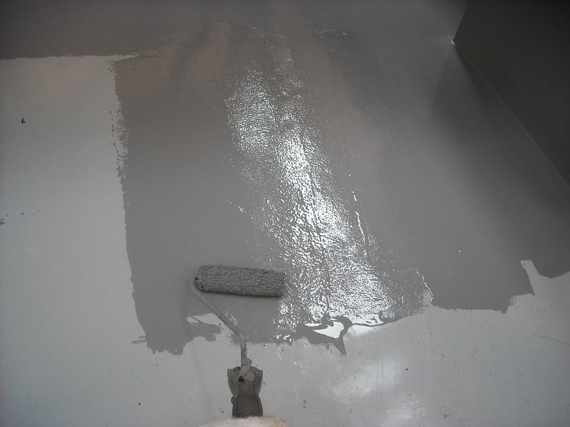 ④ウレタン1層目を塗っている様子 乾いたら2層目を塗り重ねます