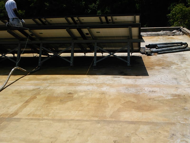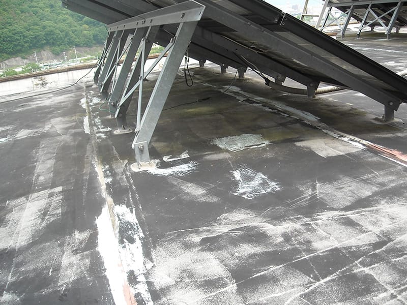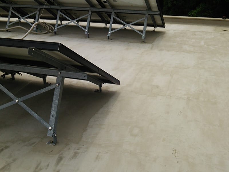 これで、雨漏りの心配はありません!屋上にソーラーパネルを設置されていましたが、パネルの架台廻りも丁寧に施工いたしました。